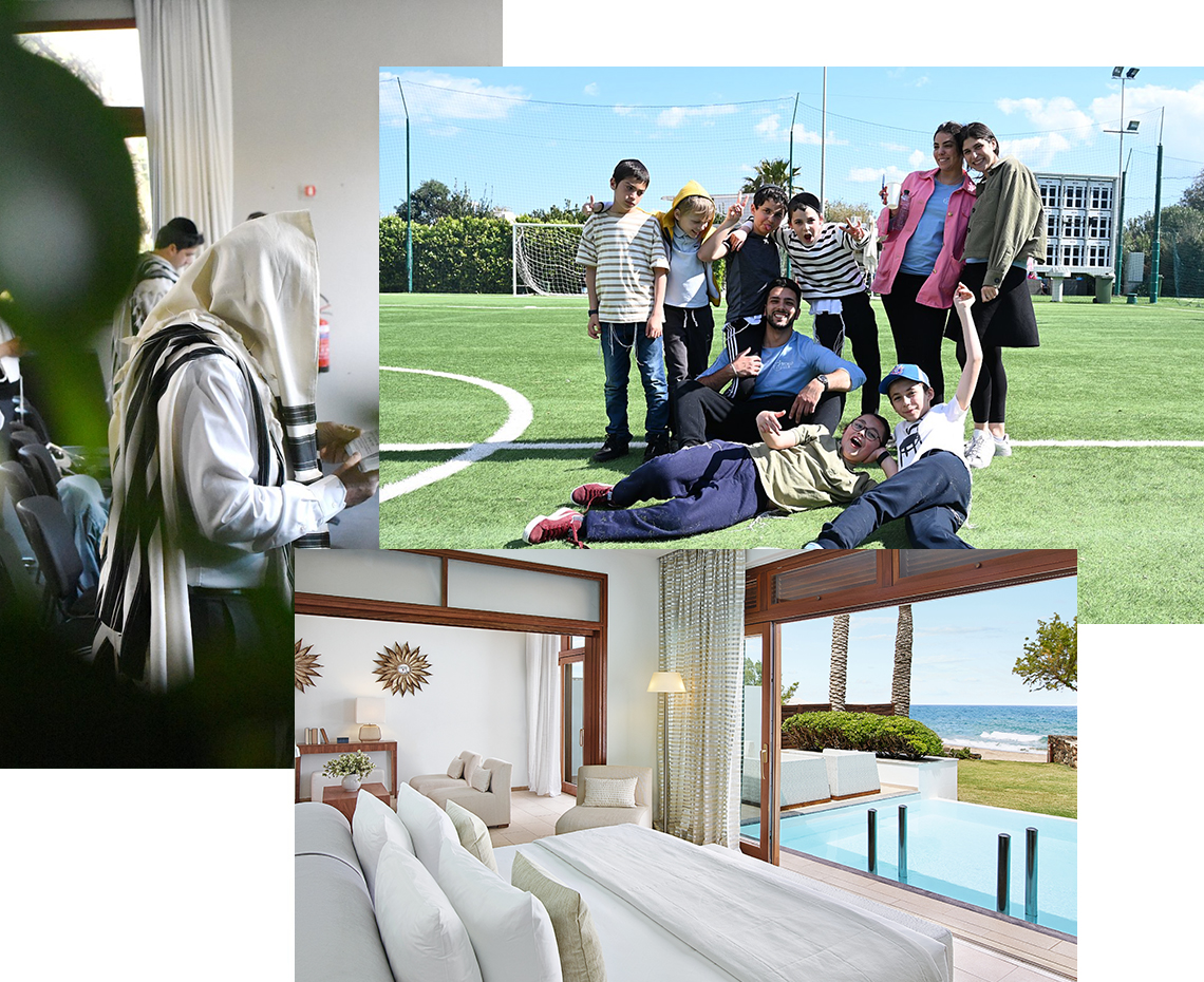 Luxury kosher Pesach vacation at the Amirandes Grecotel exclusive resort with J WORLD CLUB, in Crete, an enchanting island bathed in the crystal clear waters of the Mediterranean Sea. Activity : tennis courts, football, basketball, volleyball, pools, SPA, fitness facilities, pools and seafront with water sports.